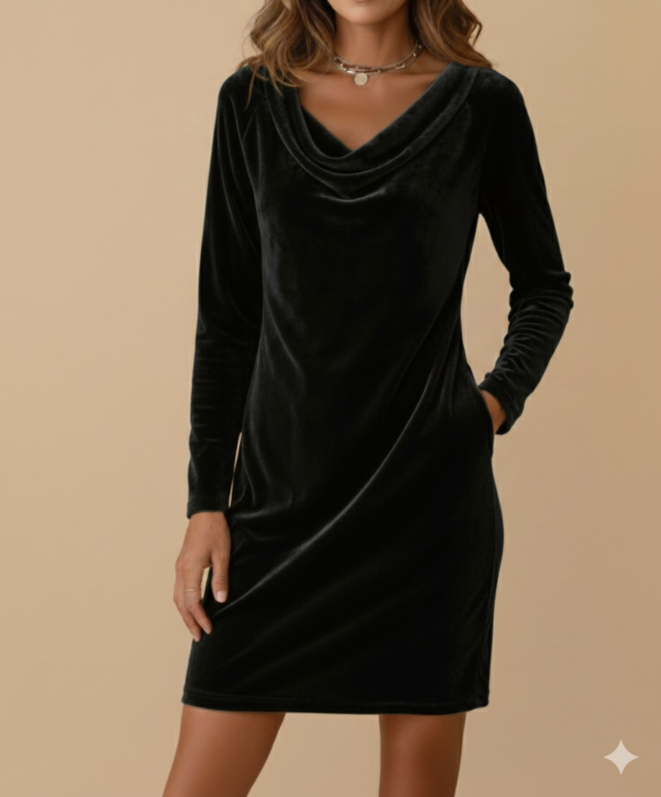 Il velluto soffice, la silhouette svasata e il collo morbido creano un look curato senza sforzo, perfetto dalla mattina alla sera — per cene, feste, eventi oppure per un’uscita speciale.